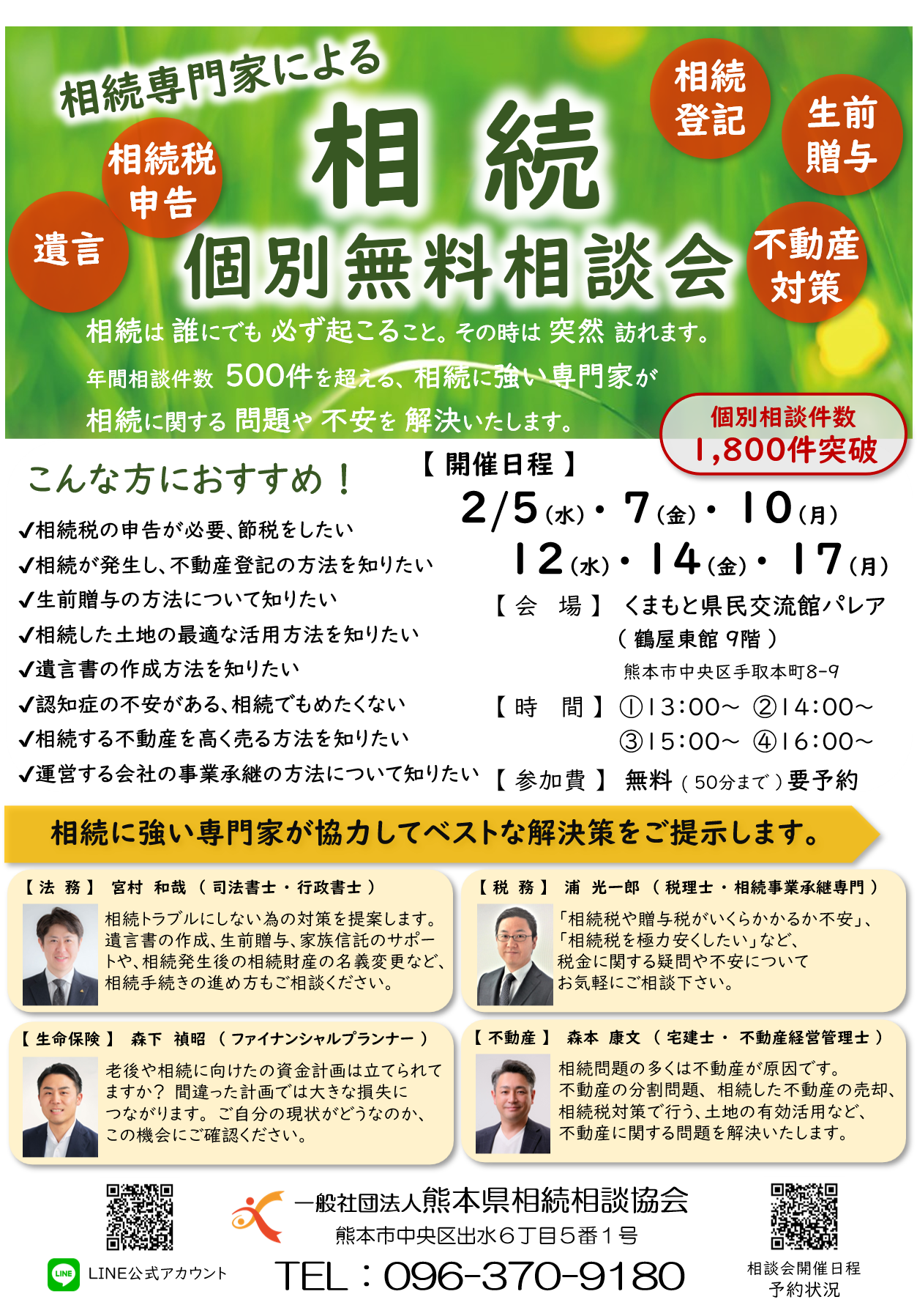 お知らせ【2月開催】相続個別無料相談会|熊本で相続の相談なら一般社団法人熊本県相続相談協会へ